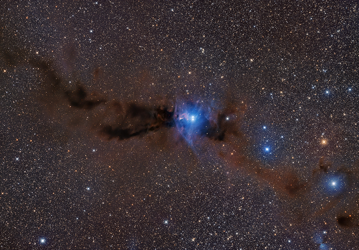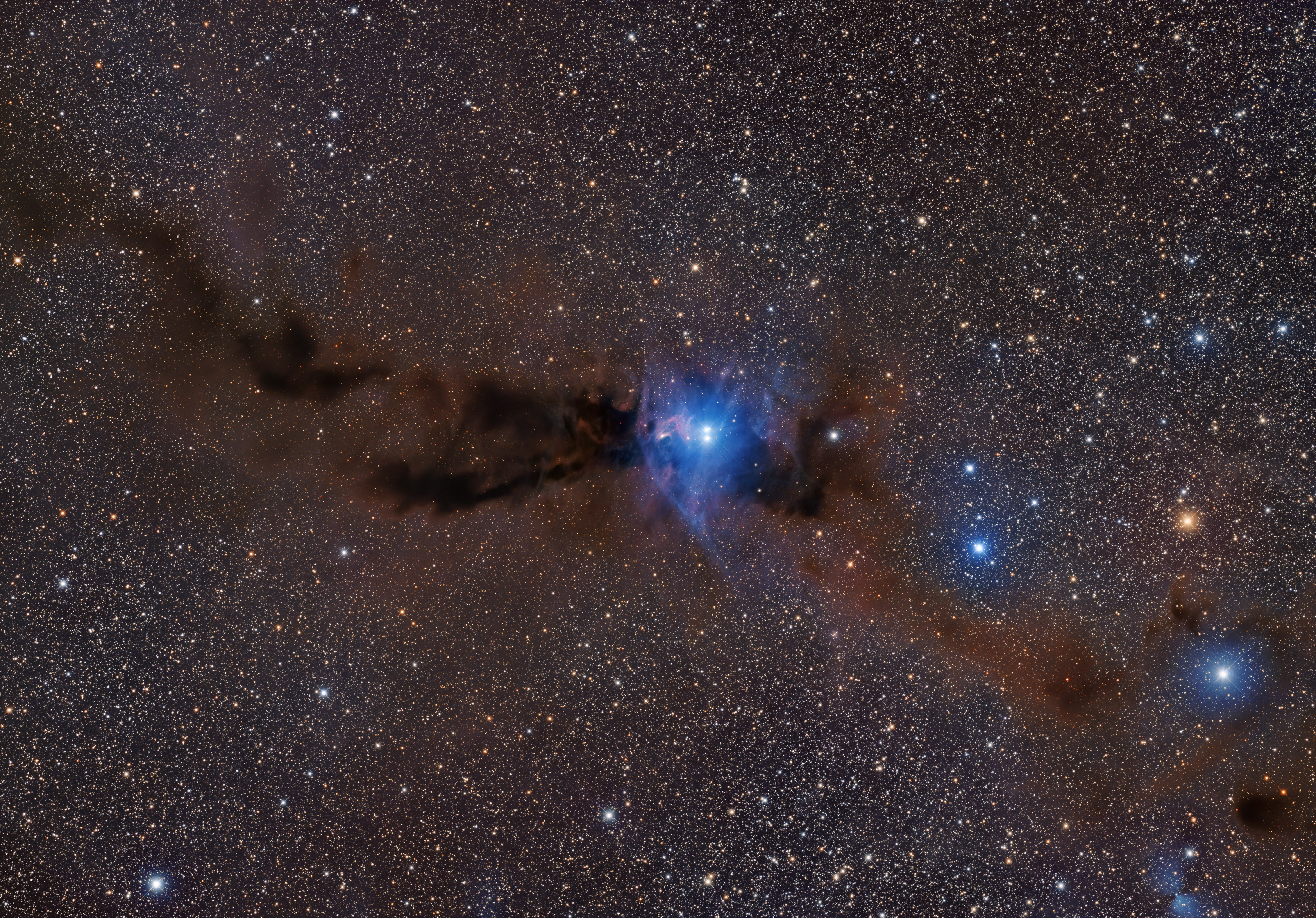 Bernes 149 bzw. Sandqvist und Lindroos 14 ist ein Reflexionsnebel um die Sterne HR 5999 und HR 6000 inmitten der Dunkelwolke Lupus 3. |