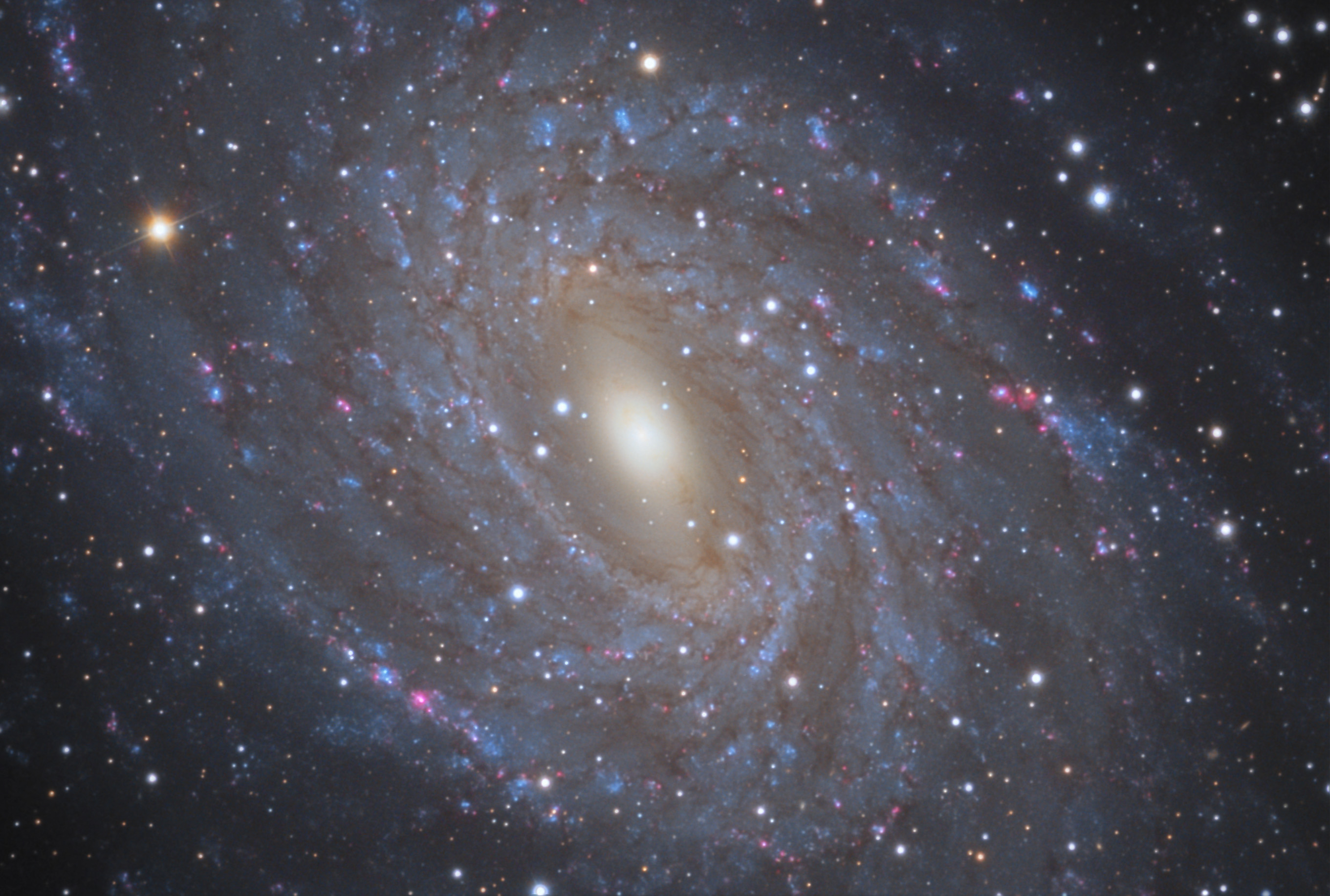 größte Balkenspirale am Himmel. Ein Bild der selben Galaxie, aber mit lediglich 1/5 der Brennweite, das 20 Jahre später mit Rhea entstand, ist hier zu finden. |