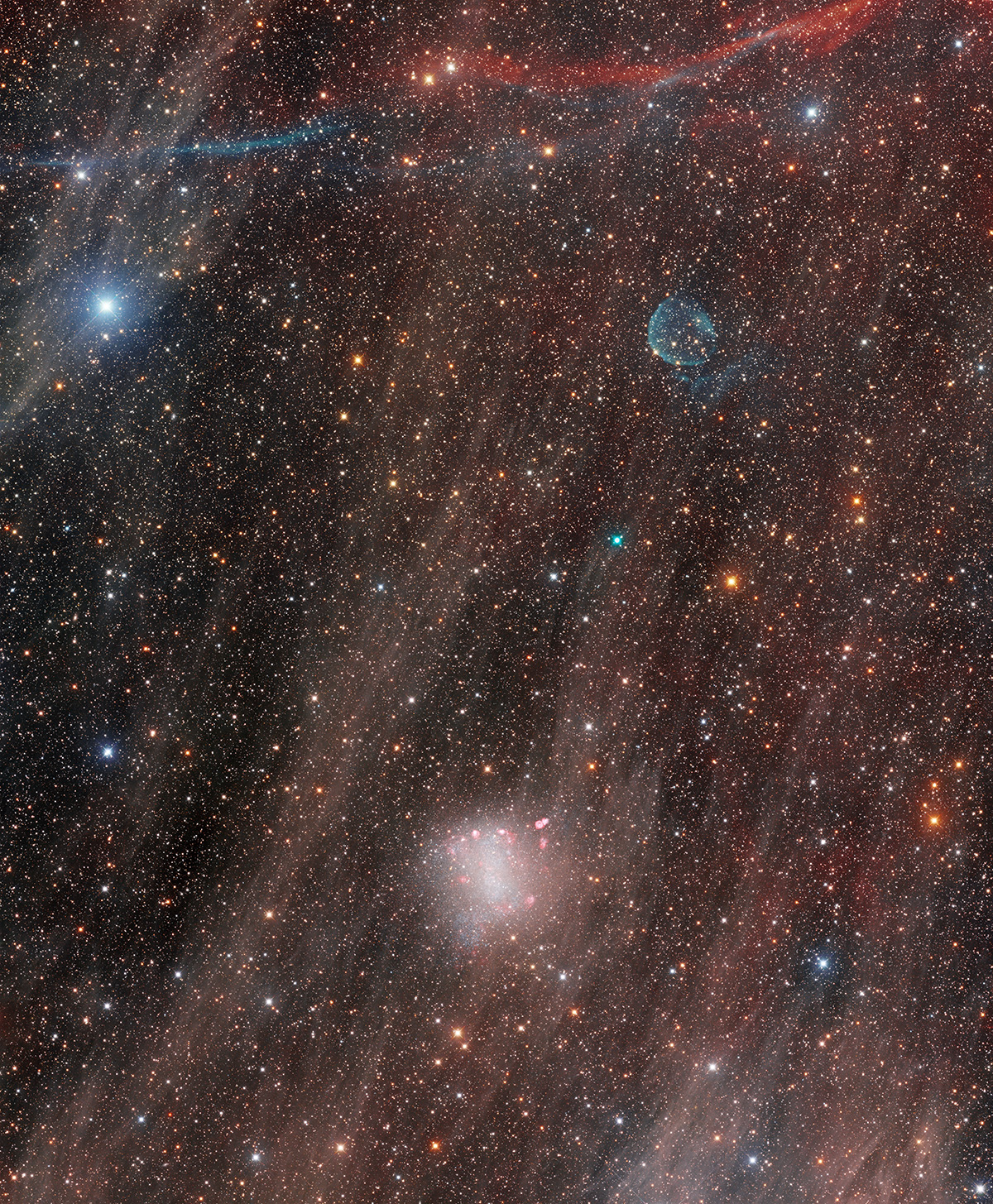 shows the irregular dwarf galaxy NGC 6822 in the constellation Sagittarius,