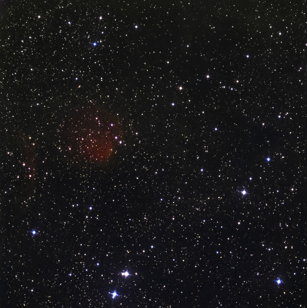Zur Orientierung: der hellste Stern im Feld ist der "Count-Down" SAO 87654. Weitere Informationen über Kronberger et al. finden sich z.B. hier. Eine invertierte, kontrastverstärkte Version des Bildes oben ist unter diesem Text zu finden. |