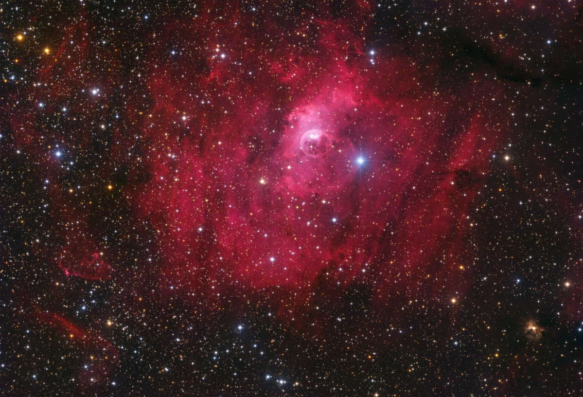 Blasennebel in der Cassiopeia. Der Nebel entsteht durch den Sternwind des